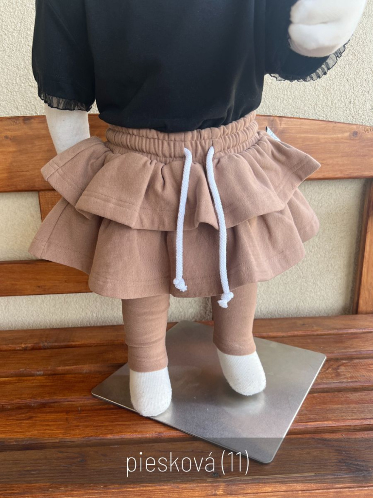 Elegantné legínky z materiálu PARMA s pridanou bohatou sukničkou. V páse majú funkčnú šnúrku.