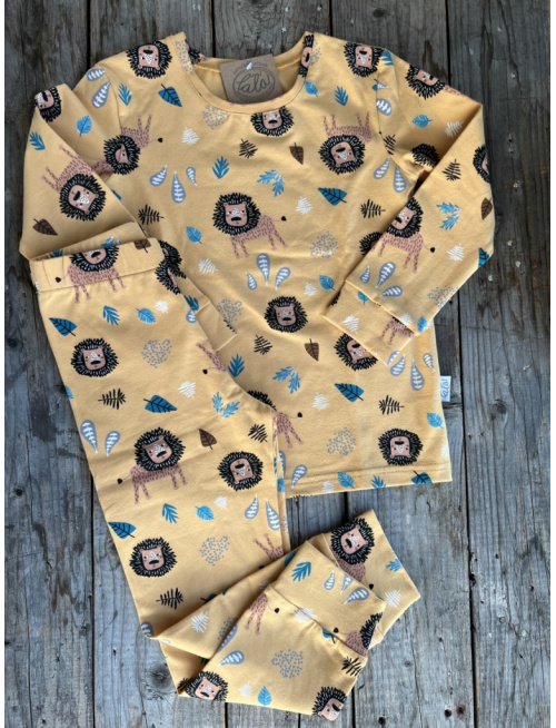 Detské pyžamko s rastúcimi manžetami LEVÍK na horčici - klasik strih