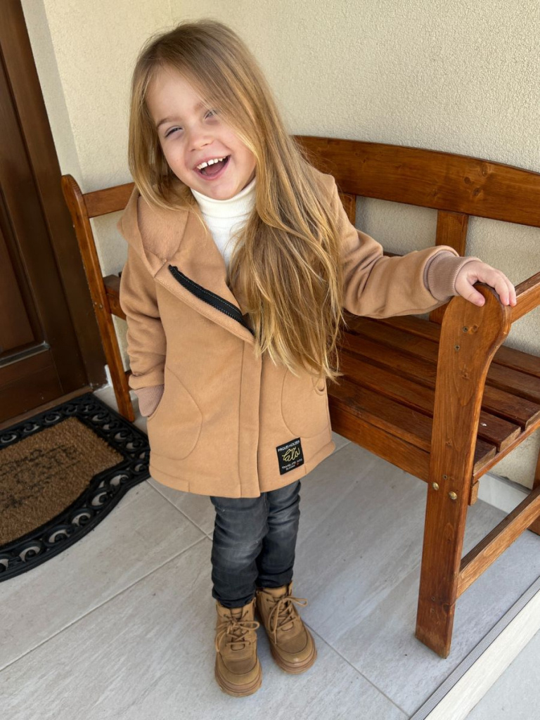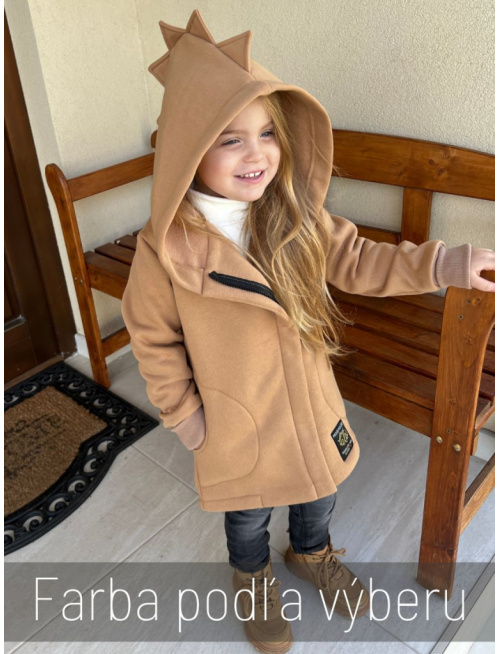 Rastúci kabátik DINO v univerzálnom strihu so šikmým zapínaním na zips. Vďaka šikmému zapínaniu má hlbšiu kapucňu. Kapucňa je podšitá počesom vo farbe kabátika. Kabátik má vrecká a DINO ostne.