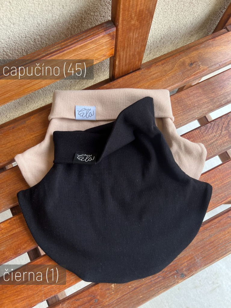 Prevliekací nákrčník ušitý z obľúbenej rebroviny. Bol navrhnutý tak, aby sa dal obliecť pod vetrovku. Chráni tak sčasti hrudník a šiju. Nákrčník je ušitý po celej ploche z dvoch vrstiev. Nákrčník šijeme s obojstrannou ĽAĽA etiketou, takže bude viditeľná či už sa rozhodnete nákrčník vyhnúť alebo nechať nevyhnutý vysoko na krku.