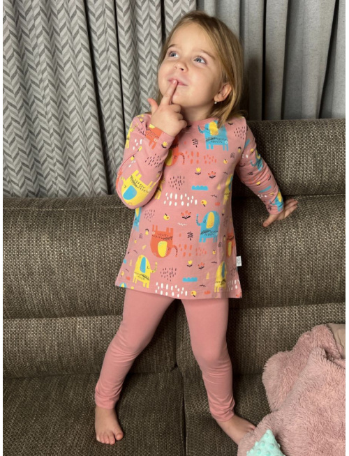 Detské pyžamko s rastúcimi manžetami SLONÍKY NA STARORUŽOVEJ - tunikový strih