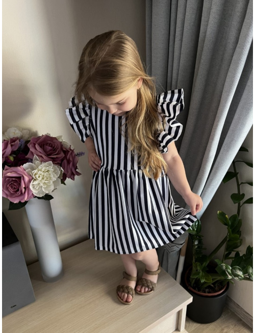 Šaty pre dievčatá sú v dokonale pohodlnom strihu s prestrihom v páse a riasenou sukňou s vlečkou. Sú spestretené bohato riaseným volánom namiesto rukávov. Výstrih sme málinko zväčšili pre väčšie pohodlie pri obliekaní.