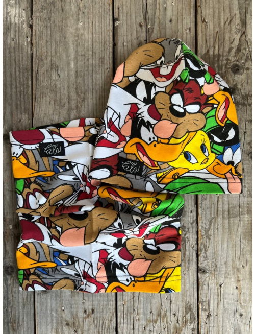 Príjemne elastický set tepláková čiapka v predĺženom strihu + tunel.