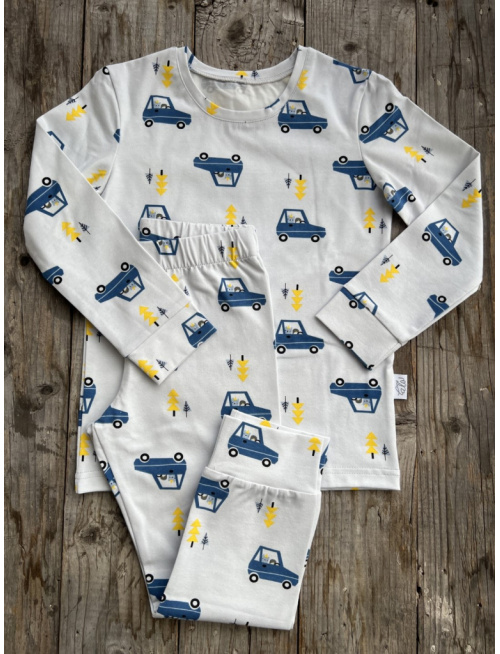 Detské pyžamko s rastúcimi manžetami OSOBNÉ AUTÁ NA SIVOM - klasik strih