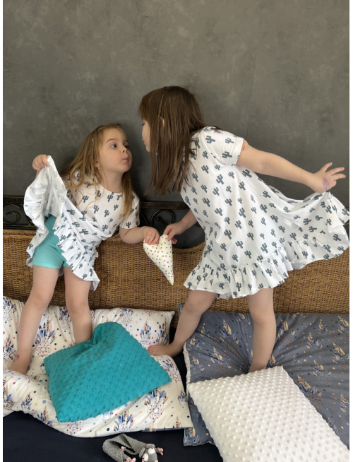 Detská nočná košielka s kraťaskami. Skvelý výber pre malé princezné, aby im bolo pohodlne pri hraní aj spaní. Košielka je s krátkym rukávom a v spodnej časti je ozvláštnená volánikom.