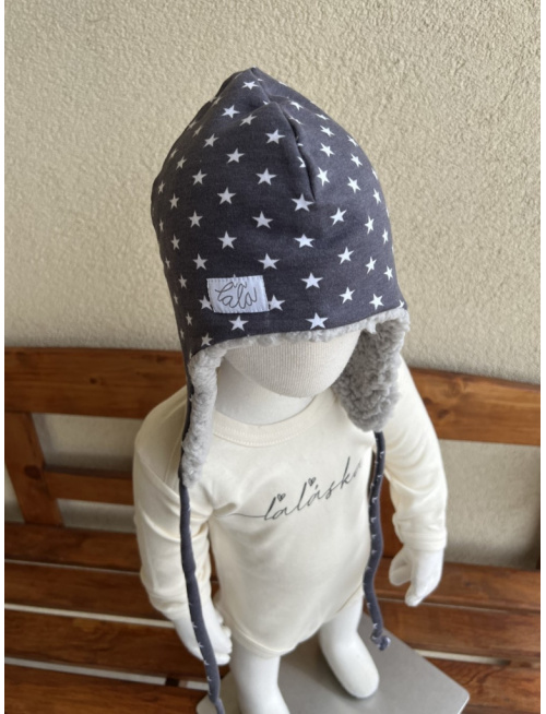 Zimná ušiačka z počesu podšitá barančekom - hviezdičky - len do vypredania zásob