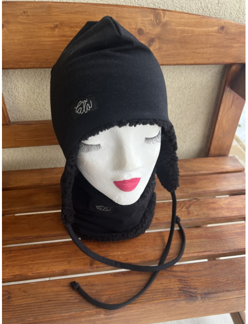 SET tepláková ušiačka s priliehavým tunelom. Ušiačka aj tunel sú podšité barančekom.