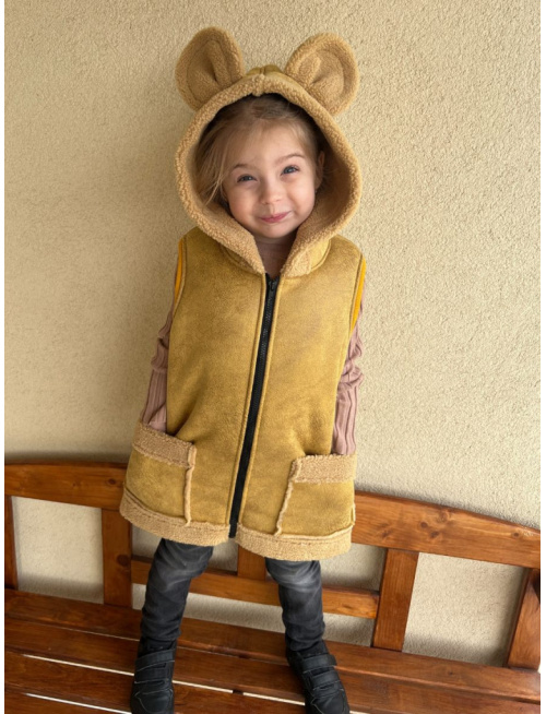 Teddy vesta s uškami - ALEX - rovno zips - horčicová - Macko