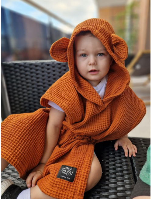 Detské vaflové pončo s uškami podľa výberu - terakota