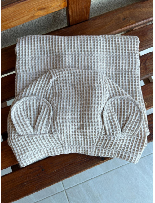 Detské vaflové pončo s uškami podľa výberu - pieskové