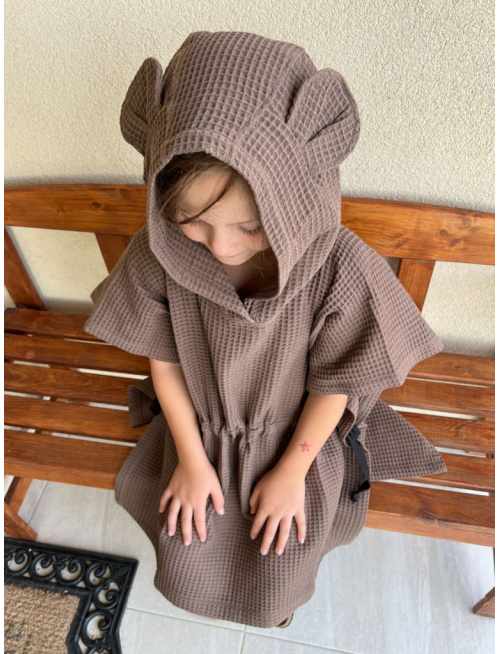 Detské vaflové pončo s uškami podľa výberu - tmavohnedé