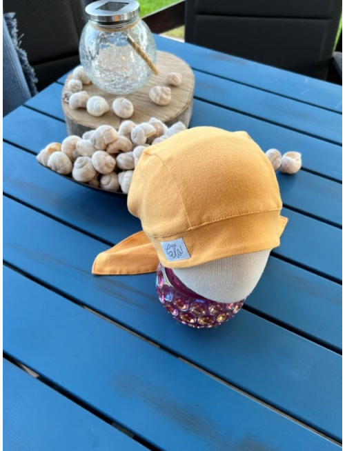 Pirátka bez šiltu na viazanie - jednofarebná - horčicová