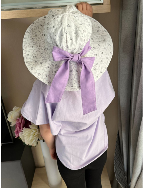 V lete by nemala byť žiadna hlávka bez klobúka. Vďaka šiestim dielikom na hlávke si drží svoj dokonalý tvar šilt, ktorý je naozaj neprehliadnuteľný. Tento klobúk je vhodný pre veľké aj malé slečny. Na zadnej časti je široká stuha (5cm), z ktorej uviažete bohatú mašľu a zároveň ňou viete regulovať veľkosť klobúčika. Vnútro klobúka je podšité bielou bavlnou.
