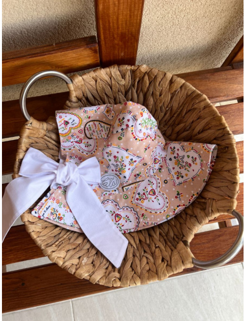V lete by nemala byť žiadna hlávka bez klobúka. Klobúk je navrhnutý tak, aby bol v pravom slova zmysle rastúcim. Má veľký otvor vzadu a tým pádom sadne na každý obvod hlávky, ale kvôli hĺbke sme ho navrhli v štyroch veľkostiach. Klobúk využijete viacero sezón. Vnútro klobúka je stále podšité bielou bavlnou. Šilt sa odkláňa od tváričky mierne. Stuha sa pôvodne navrhla úzka kvôli malým bábätkám a chlapcom, ale máte ju v obľube aj pre väčšie slečny, tak sme ponechali na výber obe verzie stuhy úzka (2,5 cm) alebo široká (5 cm). Zo širokej stuhy uviažete bohatú mašľu pre veľké a malé parádnice.