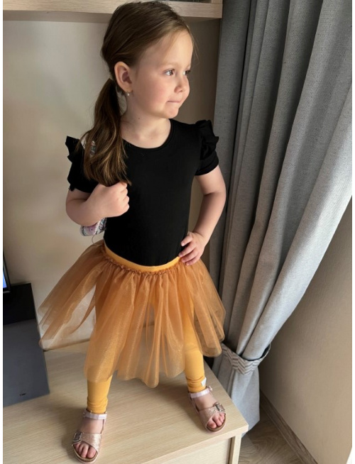 Tričko elegantného strihu, v páse zúžené a na ramene spestrené volánikom.