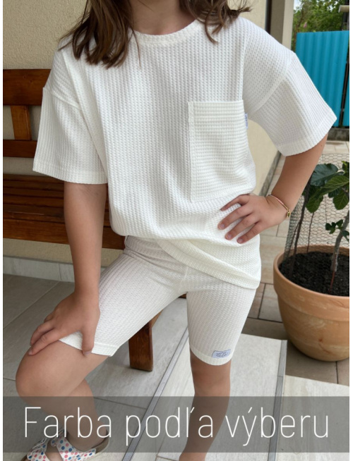 Súprava z bavlneného úpletu v minimalistickom strihu s efektom padnutých ramien a celkovom oversize prevedení. Tričko v oversize strihu s nadrozmerným vreckom je univerzálne pre chalana aj babu. Spolu s tričkom máte v tomto produkte cyklo legíny ako ideálnu verziu súpravy pre dievčatá, ale kľudne ich môžu nosiť aj chlapci.