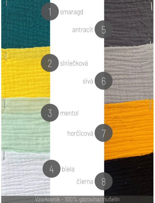 Vzorkovník - 100% dvojitá gázovina/Mušelín - jednofarebná