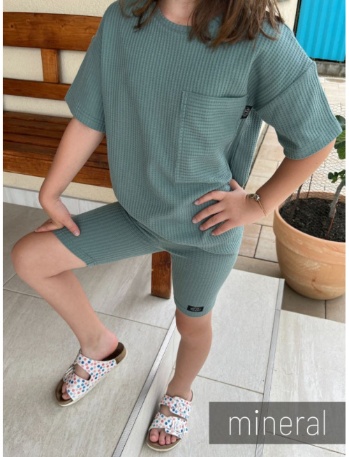 Súprava MEXICO - girl - vafle úplet - mineral