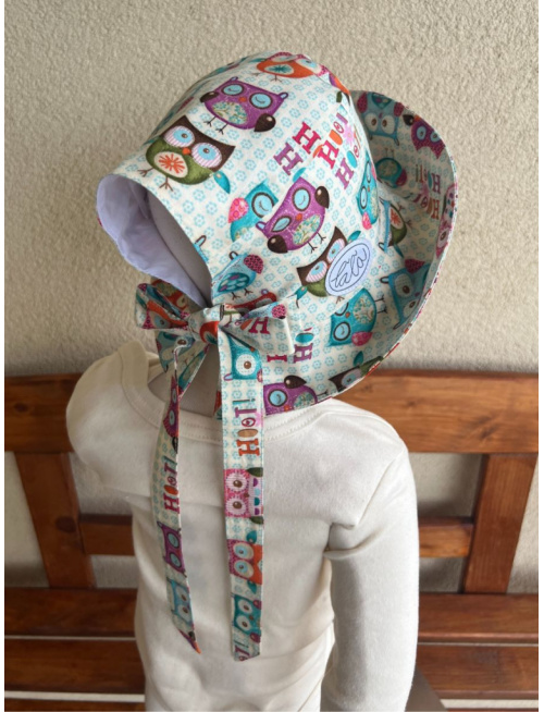V lete by nemala byť žiadna hlávka bez klobúka. Klobúk je navrhnutý tak, aby bol v pravom slova zmysle rastúcim. Má veľký otvor vzadu a tým pádom sadne na každý obvod hlávky, ale kvôli hĺbke sme ho navrhli v štyroch veľkostiach. Klobúk využijete viacero sezón. Vnútro klobúka je stále podšité bielou bavlnou. Šilt sa odkláňa od tváričky mierne. Stuha sa pôvodne navrhla úzka kvôli malým bábätkám a chlapcom, ale máte ju v obľube aj pre väčšie slečny, tak sme ponechali na výber obe verzie stuhy úzka (2,5 cm) alebo široká (5 cm). Zo širokej stuhy uviažete bohatú mašľu pre veľké a malé parádnice.