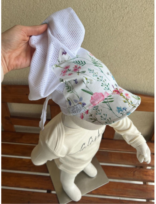 Biela dierková šatka SUMMER so šiltom - na viazanie