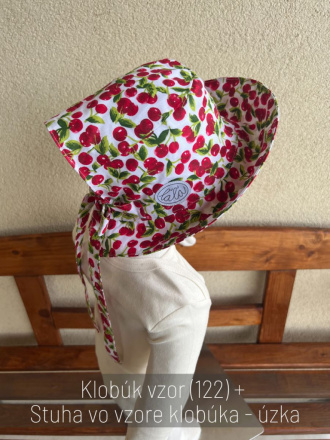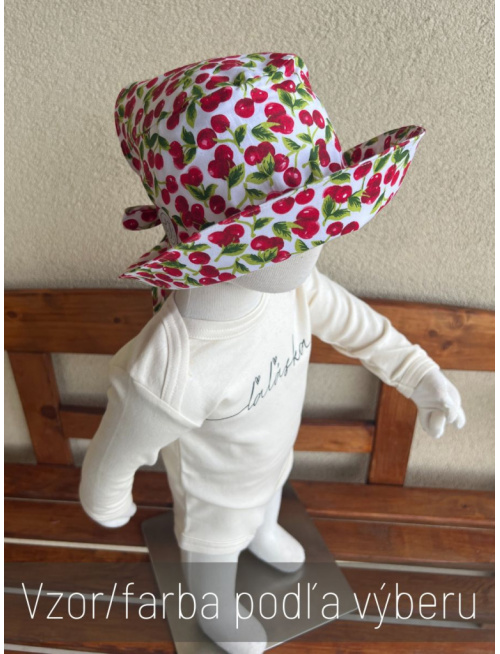 V lete by nemala byť žiadna hlávka bez klobúka. Klobúk je navrhnutý tak, aby bol v pravom slova zmysle rastúcim. Má veľký otvor vzadu a tým pádom sadne na každý obvod hlávky, ale kvôli hĺbke sme ho navrhli v štyroch veľkostiach. Klobúk využijete viacero sezón. Vnútro klobúka je stále podšité bielou bavlnou. Šilt sa odkláňa od tváričky mierne. Stuha sa pôvodne navrhla úzka kvôli malým bábätkám a chlapcom, ale máte ju v obľube aj pre väčšie slečny, tak sme ponechali na výber obe verzie stuhy úzka (2,5 cm) alebo široká (5 cm). Zo širokej stuhy uviažete bohatú mašľu pre veľké a malé parádnice.