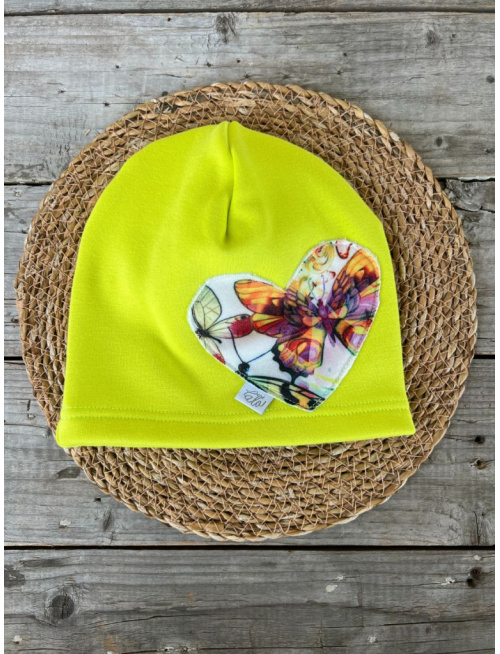 Čiapka v predĺženom strihu obohatená vzorovaným srdcom, príjemne elastická.