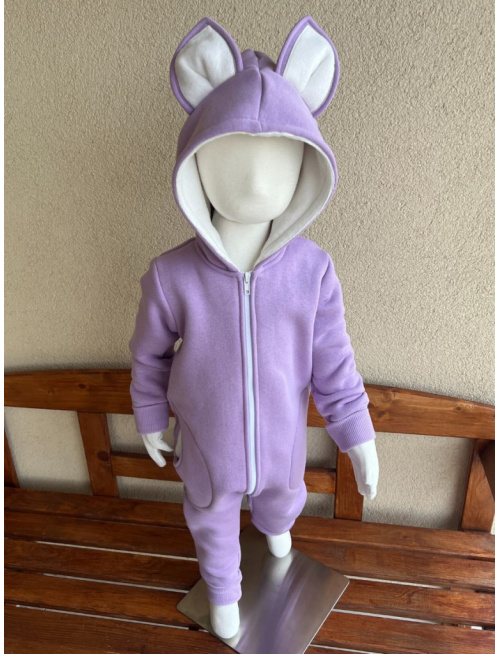 Overal s MAČKA/LÍŠKA/VLK uškami - počesaná teplákovina - lila