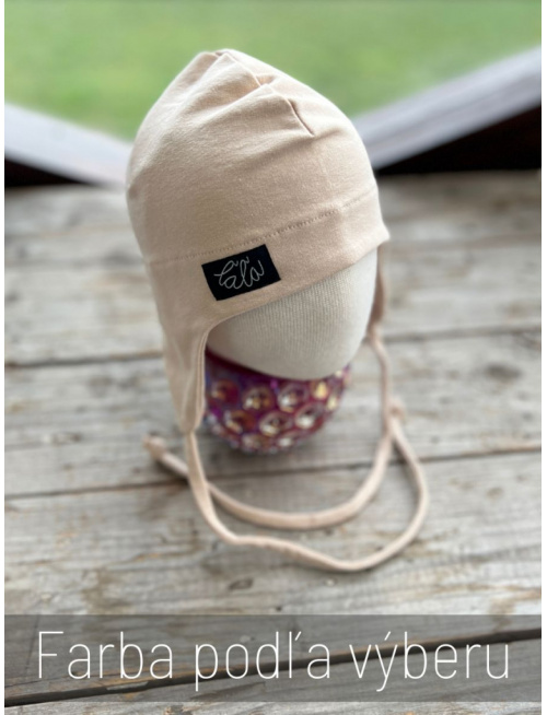 Tepláková ušiačka so šnúrkami na jarno-jesenné obdobie. Na uškách je vždy látka dvojmo, vďaka čomu čiapka skvelo kryje a chráni ušká.