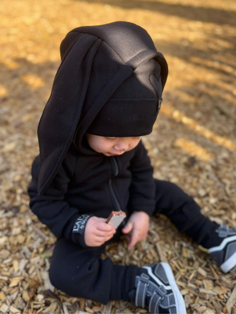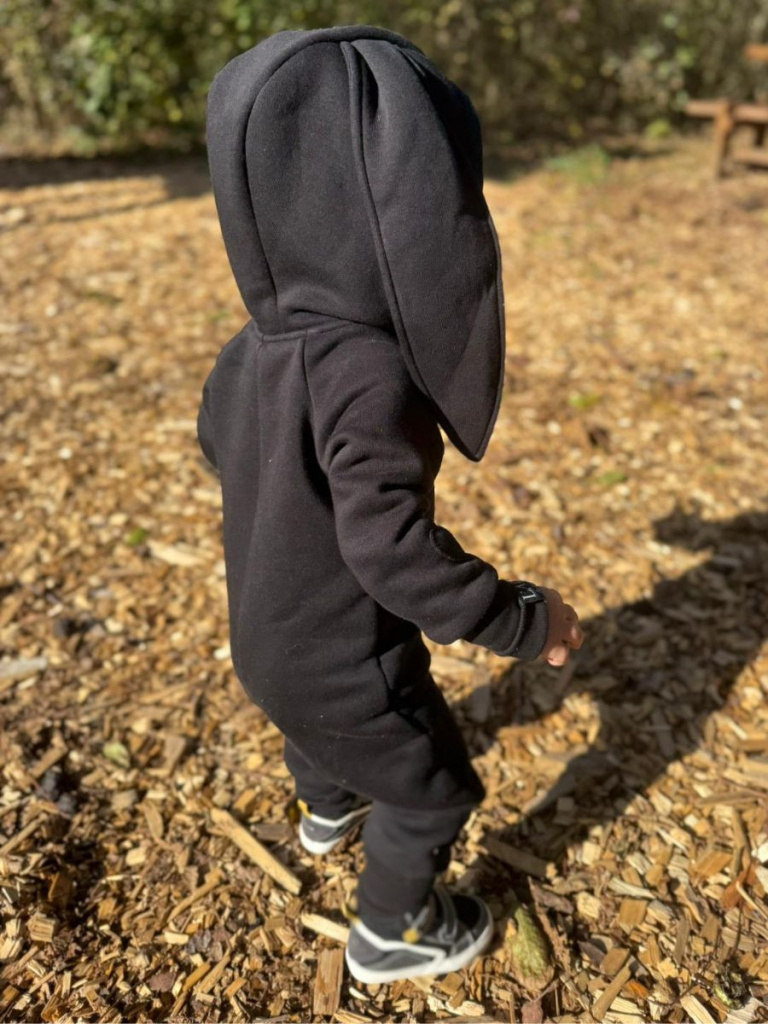 TEDDY overal z počesanej teplákoviny s MACKO uškami. Tento overal patrí do kolekcie, ktorá vznikla v spolupráci s Niky Rich.