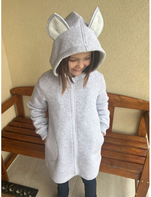 Rastúci kabátik RIO s uškami - s prestrihom - počesaná teplákovina - svetlosivý melír