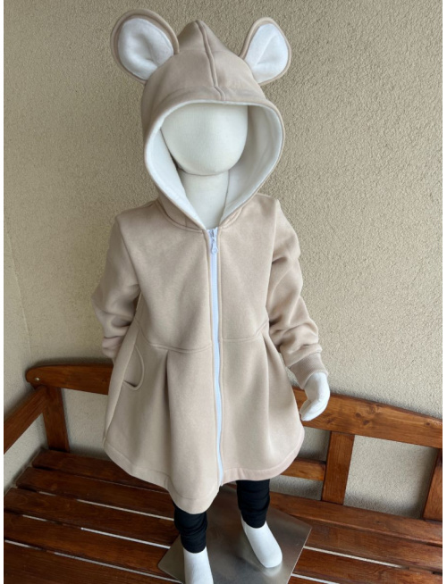 Rastúci kabátik s prestrihom - sukničkový - RIO s uškami - počesaná teplákovina - nude