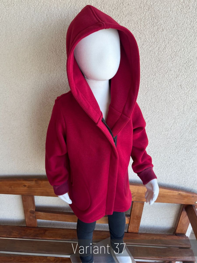 Rastúci kabátik v univerzálnom strihu so šikmým zapínaním na zips. Vďaka šikmému zapínaniu má hlbšiu kapucňu. Kabátik má vrecká.