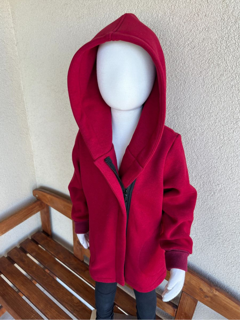 Rastúci kabátik ALEX so šikmozipsom a podšitou kapucňou - počesaná teplákovina