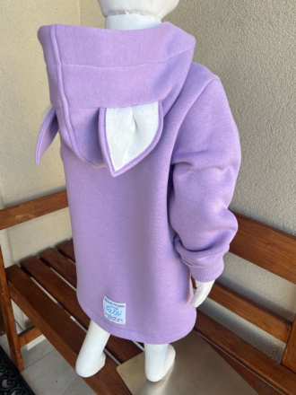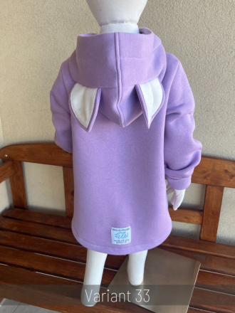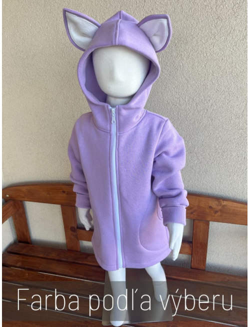 Rastúci kabátik s rovnozipsom a stojačikovou kapucňou - ALEX s uškami - počesaná teplákovina