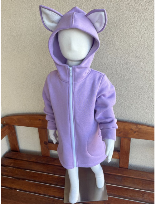 Rastúci kabátik s rovnozipsom a stojačikovou kapucňou - ALEX s uškami - počesaná teplákovina - lila