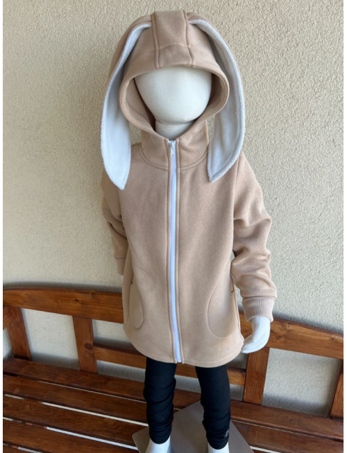 Rastúci kabátik s rovnozipsom a stojačikovou kapucňou - ALEX s uškami - počesaná teplákovina - telová