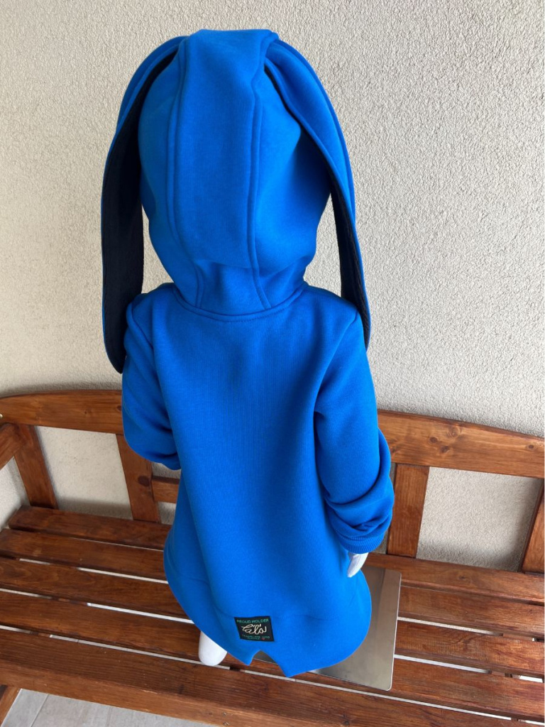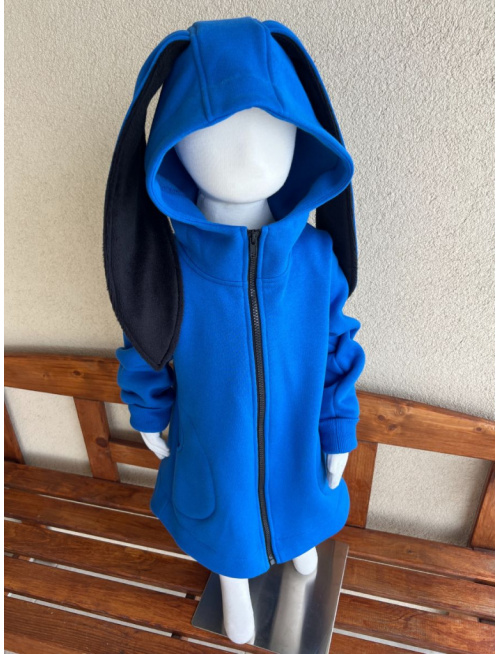 Rastúci kabátik so stojačikovou kapucňou - DOMI s uškami - počesaná teplákovina - kráľovská modrá