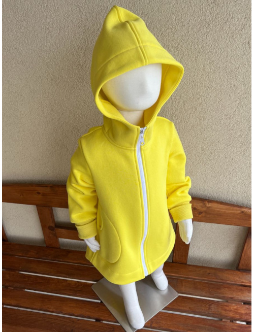 Rastúci kabátik so stojačikovou kapucňou - DOMI - počesaná teplákovina - citrón žltá