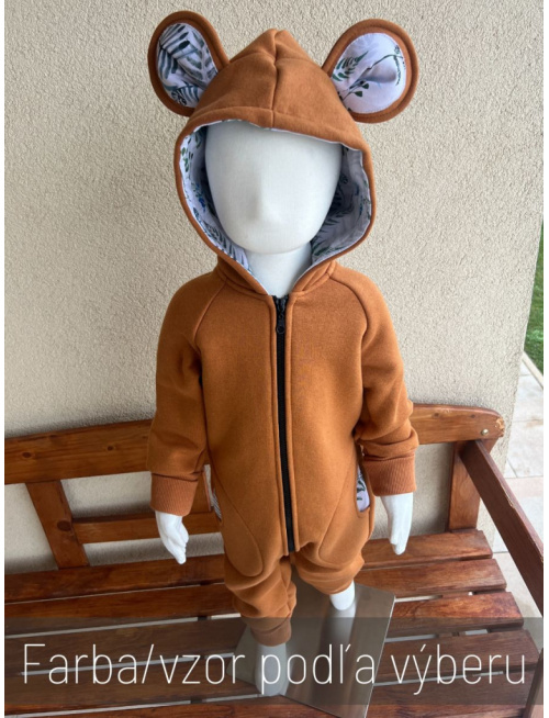 Overal s uškami - počesaná teplákovina + vzor - MACKO