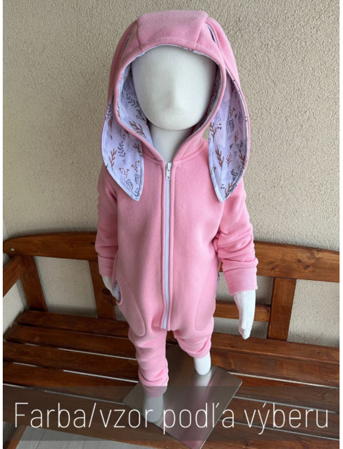 Overal s uškami - počesaná teplákovina + vzor - ZAJAČIK