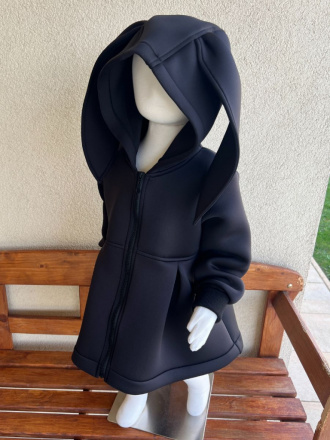 Rastúci kabátik s prestrihom - sukničkový - RIO s uškami - neoprén - čierny - LEN DO VYPREDANIA ZÁSOB