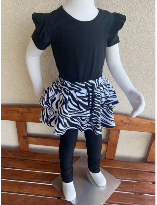Elegantné legínky s pridanou bohatou vzorovanou sukničkou. V páse majú funkčnú šnúrku.