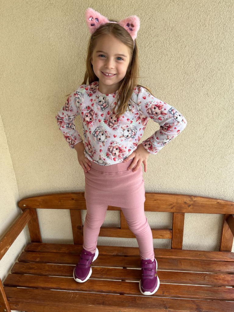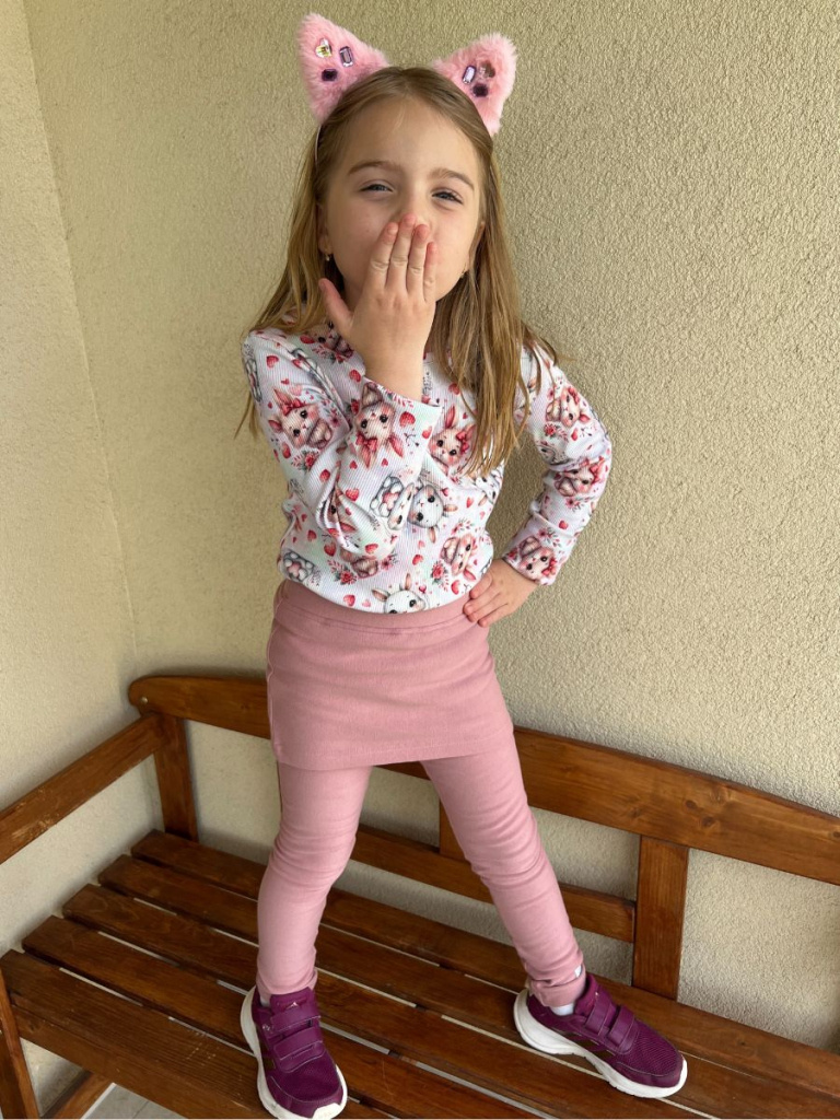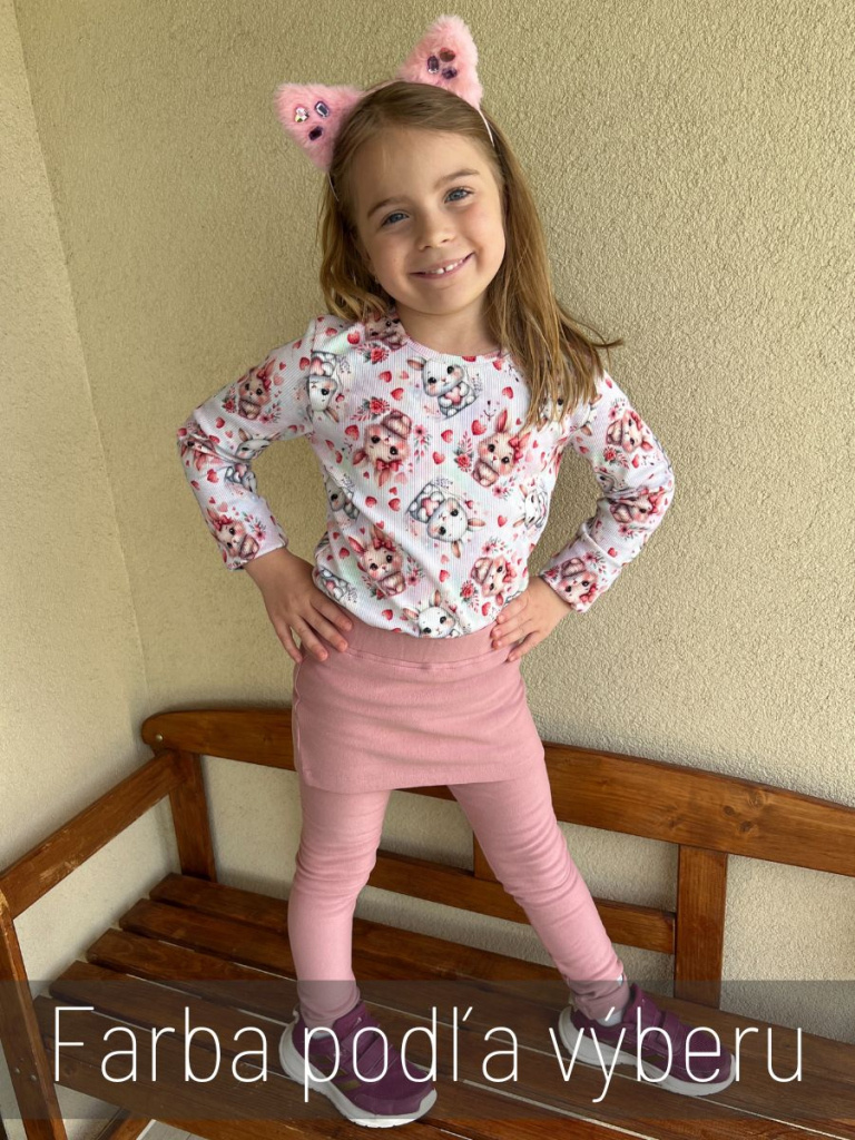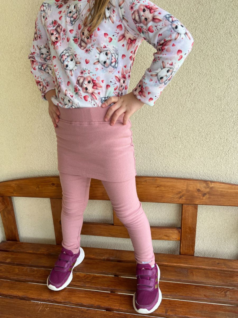 Elegantné legínky z materiálu PARMA s pridanou minisukničkou, ktorá je nie len pekná napohľad. Môžeme tu použiť prirovnanie "ovca celá aj vlk sýty" - slečna spokojná, že má na sebe sukničku a mamka, že má slečna dvojitú vrstvu na dupke. :)