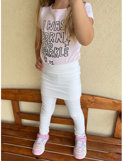 Elegantné legínky z materiálu PARMA s pridanou minisukničkou, ktorá je nie len pekná napohľad. Môžeme tu použiť prirovnanie "ovca celá aj vlk sýty" - slečna spokojná, že má na sebe sukničku a mamka, že má slečna dvojitú vrstvu na dupke. :)