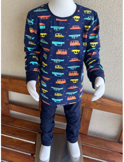 Detské pyžamko s rastúcimi manžetami AUTOPREMÁVKA na tmavomodrej + tmavomodré legogate - klasik strih