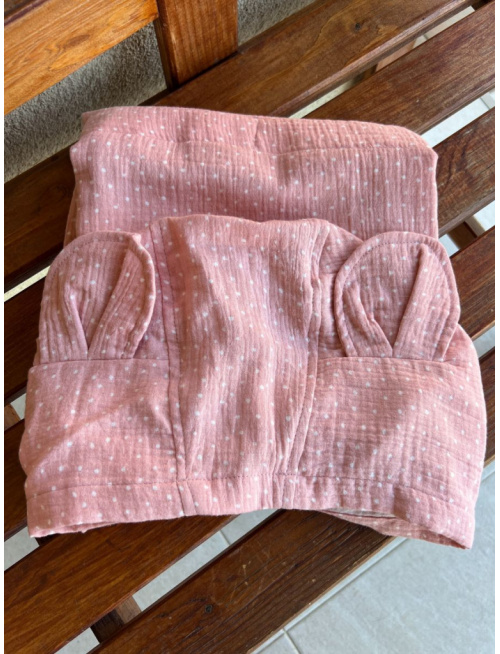 Detské pončo macko uši - guľka na staroružovej - gázovina/mušelín - LEN DO VYPREDANIA ZÁSOB