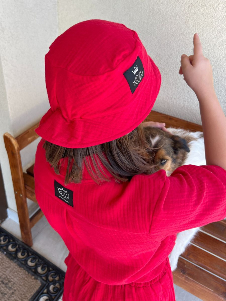 Klobúk v strihu Panáčik z gázoviny ušitý v jednej vrstve a poistený vzadu gumičkou, aby nepadal z hlávky. Klobúčik Panáčik je navrhnutý v minimalistickom strihu. Šiltík sa nevyhýňa, je zámerne krátky, aby dokonale kryl tváričku pred slnkom. Klobúk je vhodný aj pre chlapcov, bábätká, dospelých.