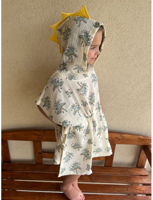 Pončo je ozvláštnené DINO ostňami po celom chrbte a kapucňa je prispôsobená ostniam - čiže je iba 1x prestrihnutá v strede.