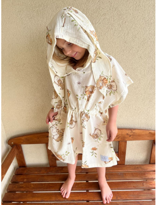 Detské pončo zajačik uši - zajačik na maslovom podklade - gázovina/mušelín