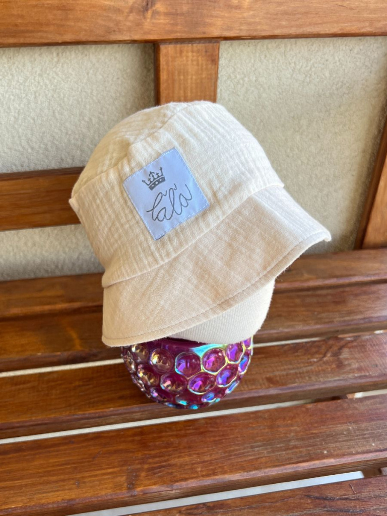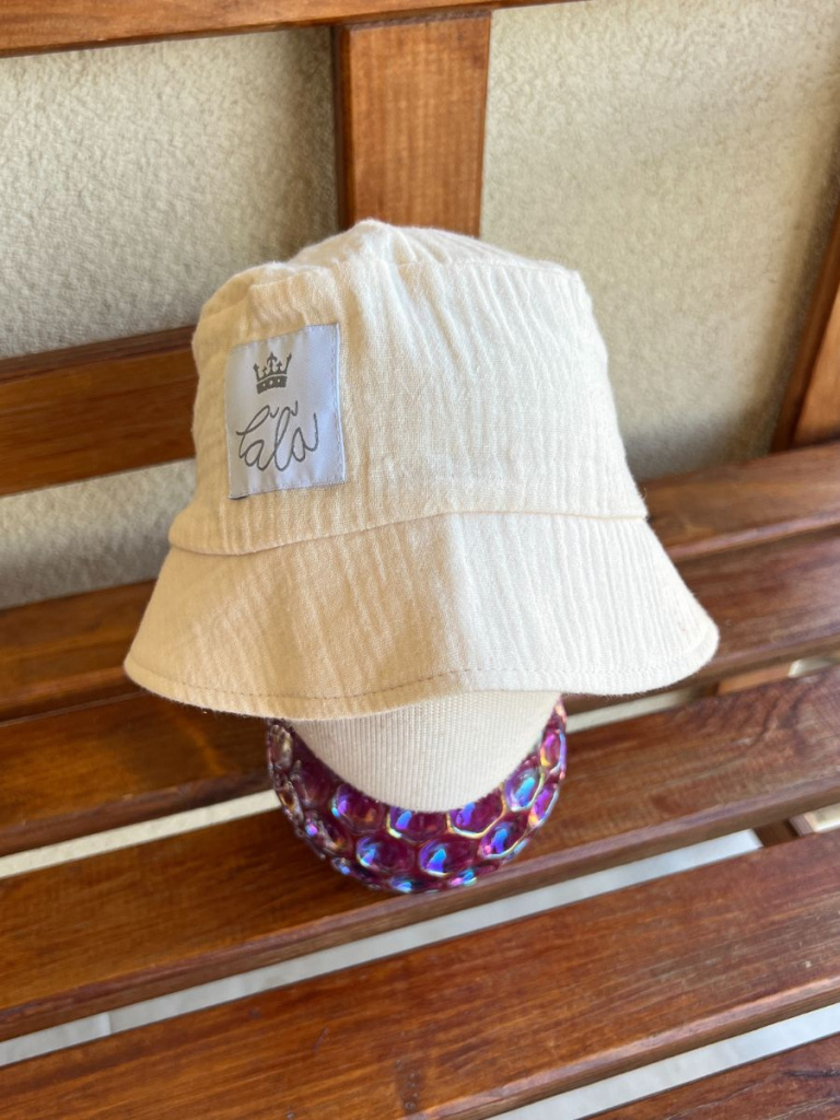 Klobúk v strihu Panáčik z gázoviny ušitý v jednej vrstve a poistený vzadu gumičkou, aby nepadal z hlávky. Klobúčik Panáčik je navrhnutý v minimalistickom strihu. Šiltík sa nevyhýňa, je zámerne krátky, aby dokonale kryl tváričku pred slnkom. Klobúk je vhodný aj pre chlapcov, bábätká, dospelých.